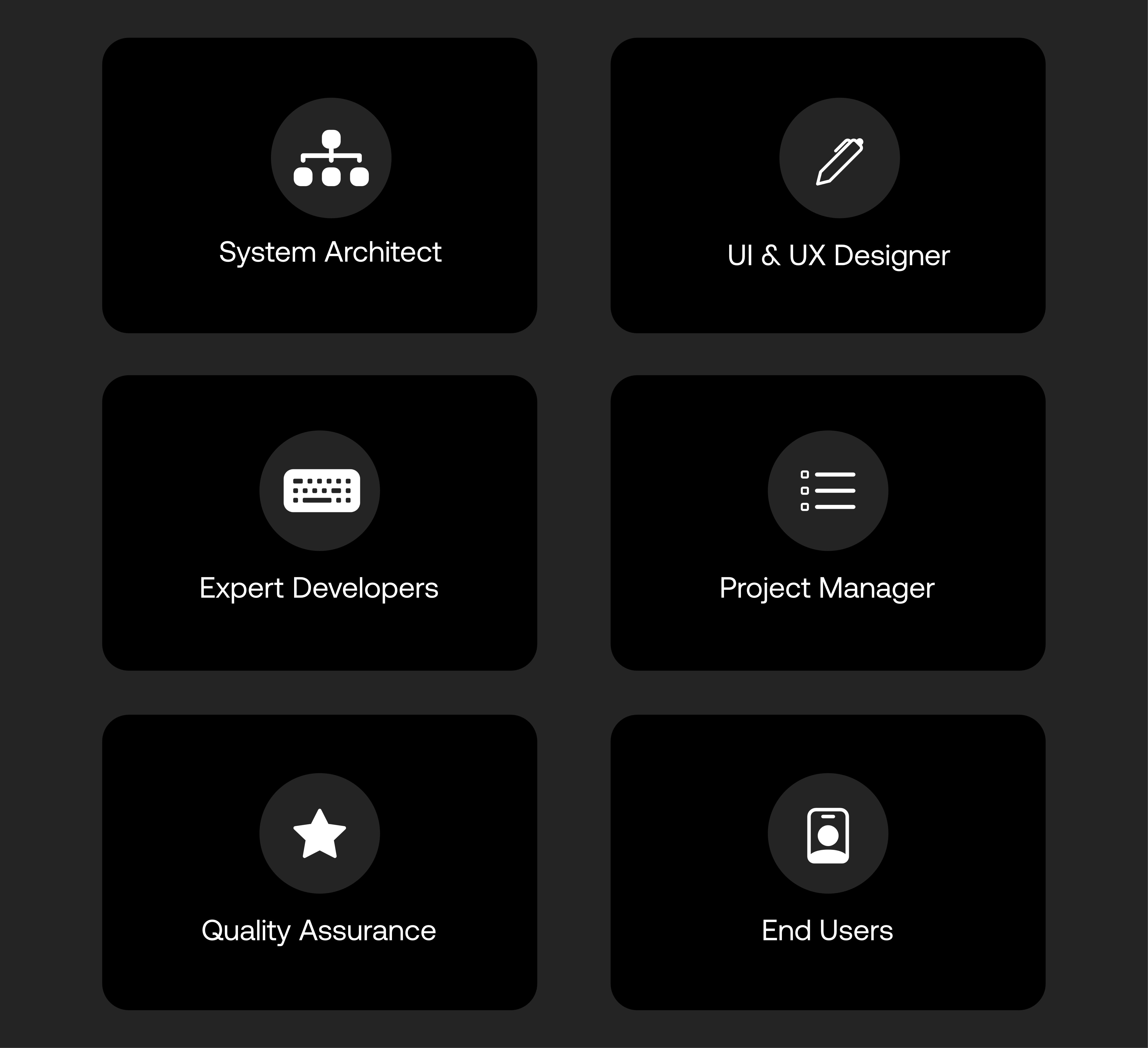 Behind every successful project is a dedicated team working in collaboration. Our System Architect defines the technical blueprint, while the UI & UX Designer ensures a seamless user experience. Expert Developers bring the vision to life with clean, scalable code. Guided by our Project Manager and thoroughly validated by Quality Assurance, we deliver solutions that are not only reliable but impactful. Finally, we listen closely to our clients and their end users, whose real-world feedback drives continuous improvement and long-term success.