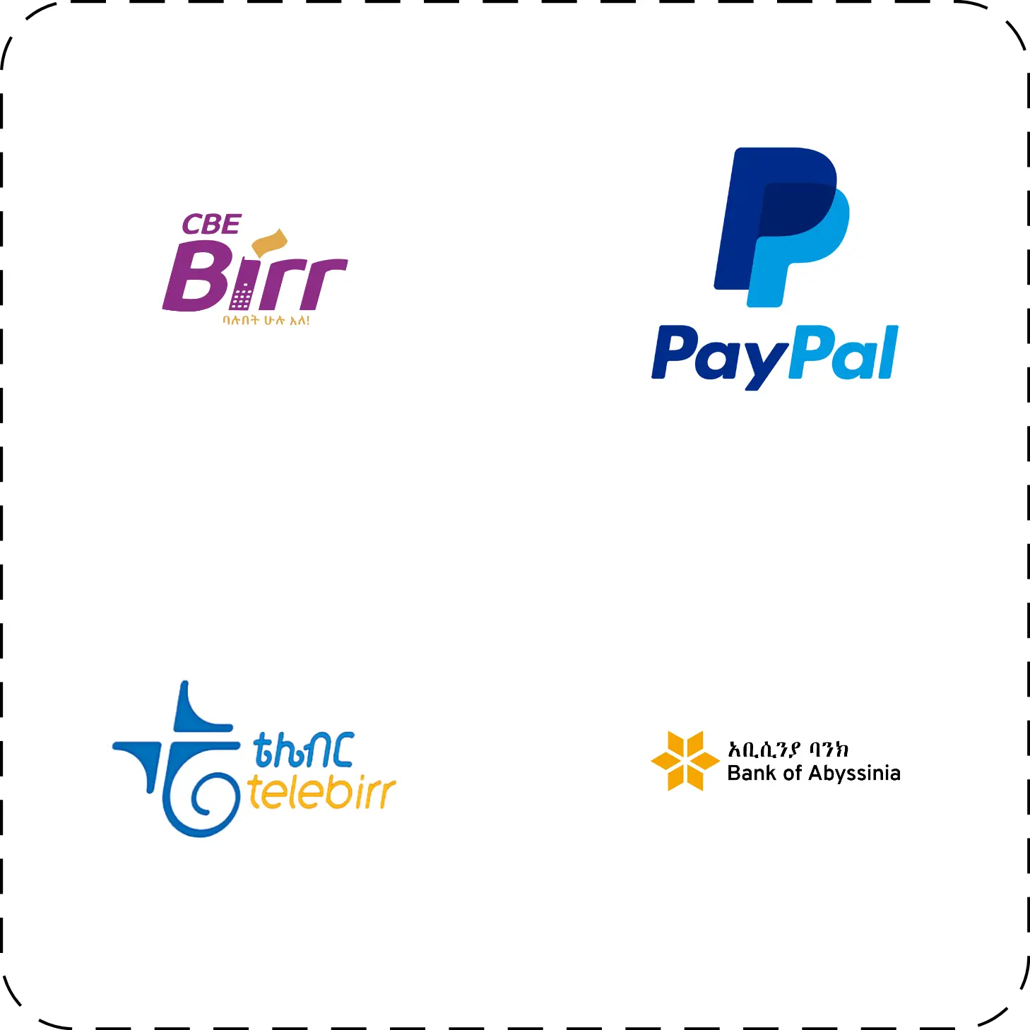 Accept Local & International Payments – Telebirr, CBE Birr, Paypal and others for your services and products. All with in your custom made website
