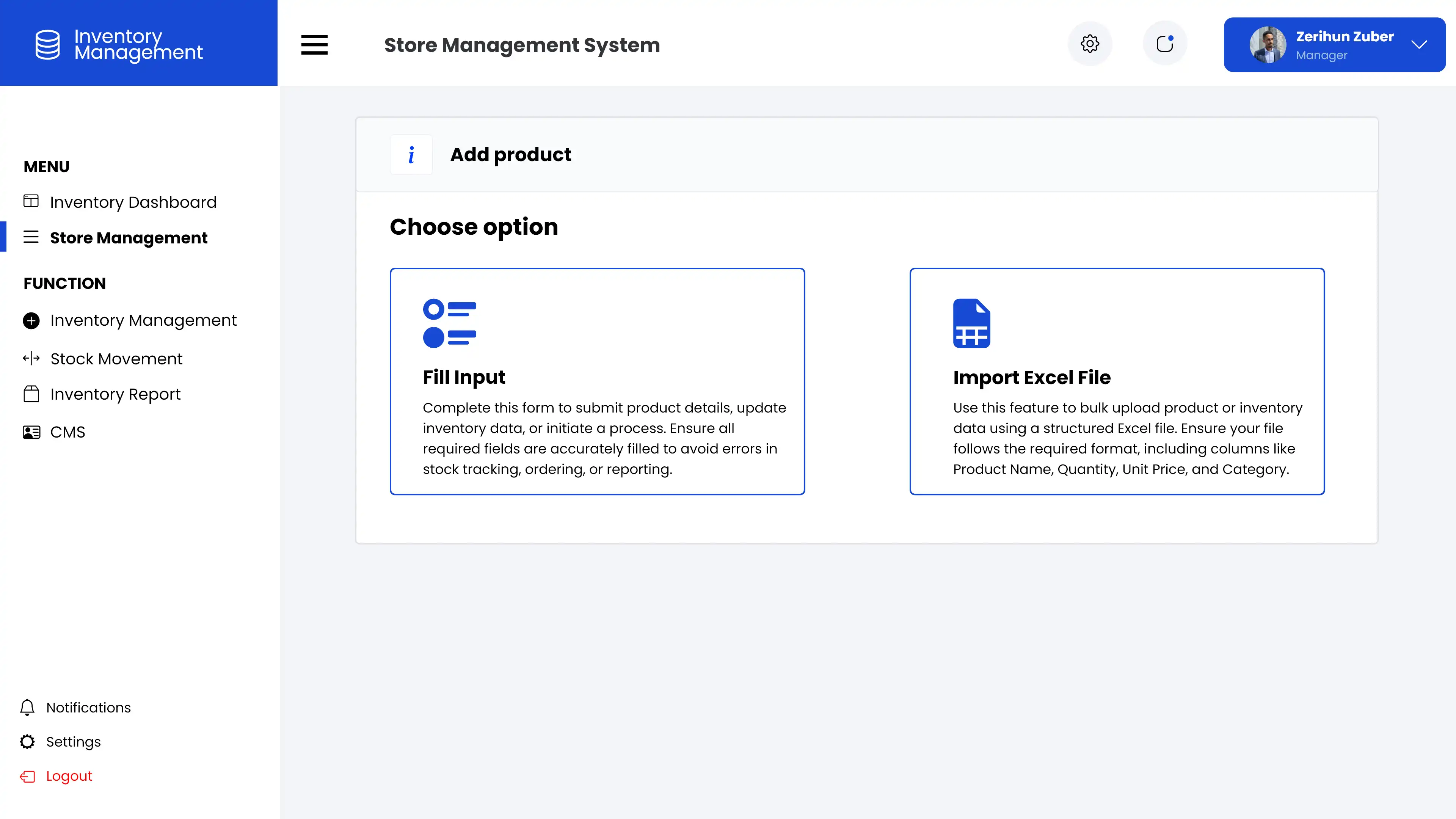 Product Catalog (Manual + Excel Import)