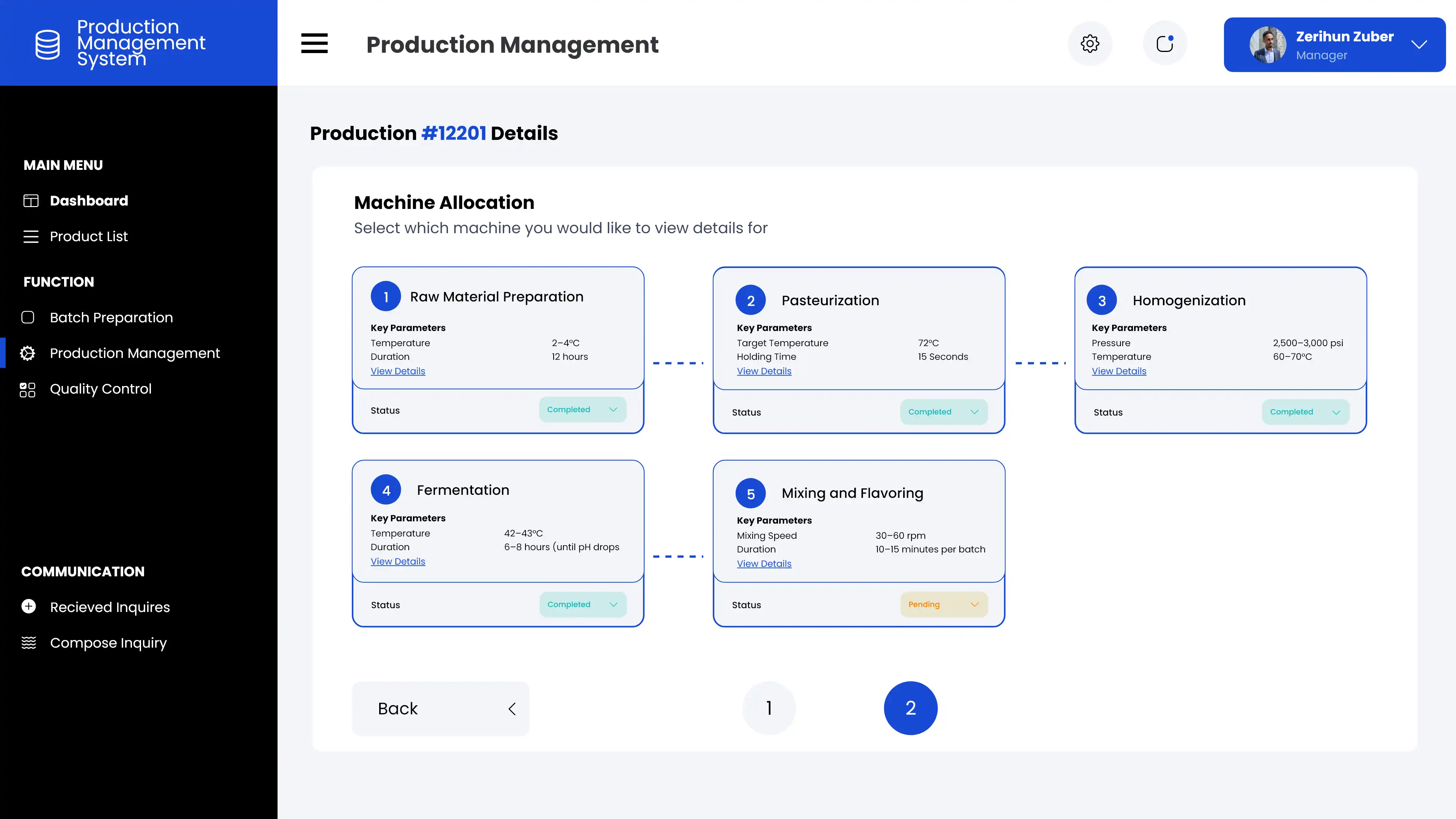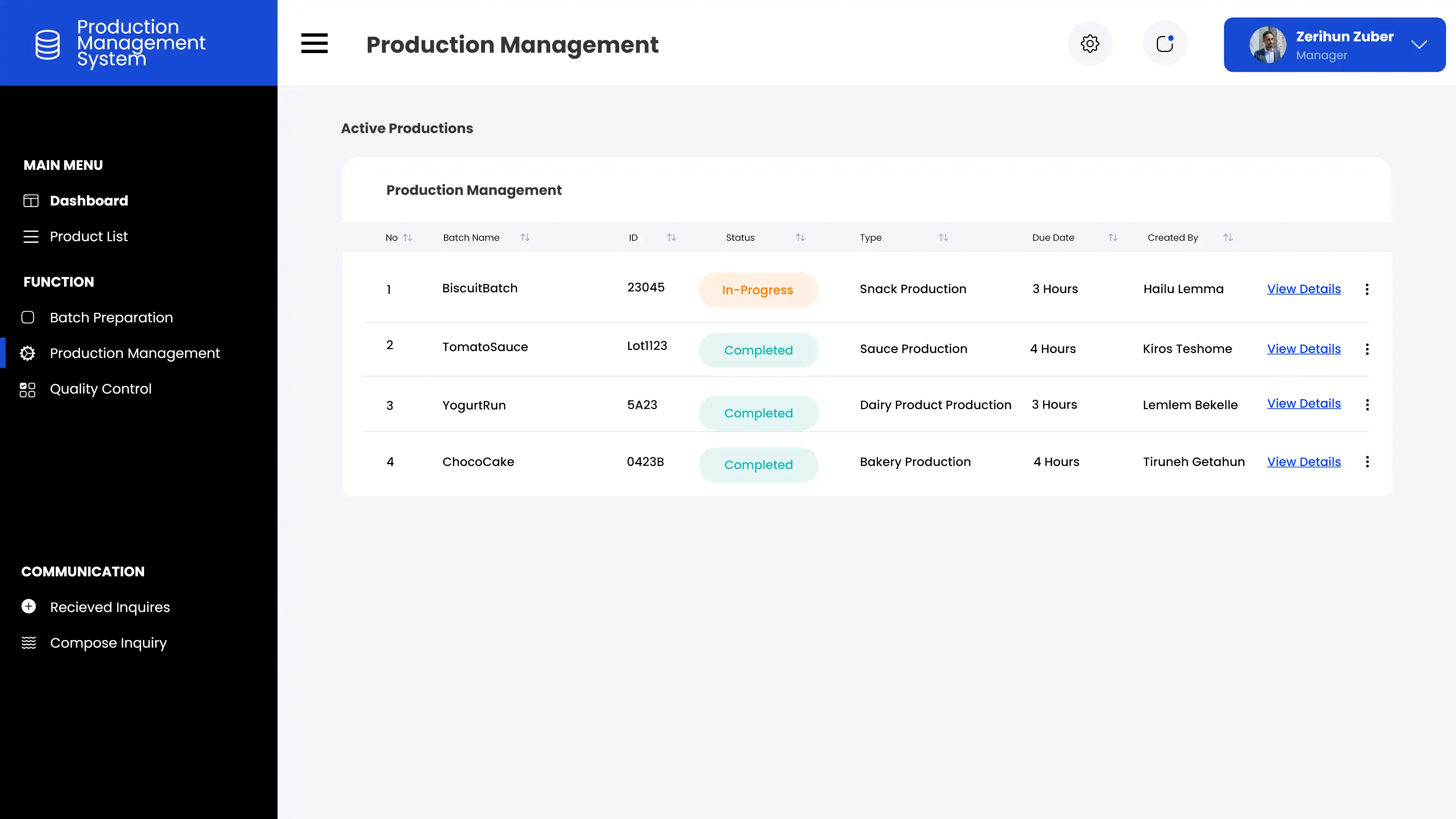 View and manage active and completed production orders, ensuring smooth operation and task coordination.